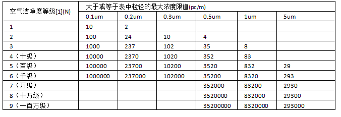 潔凈室及潔凈區(qū)空氣中懸浮粒子潔凈度等級(jí)